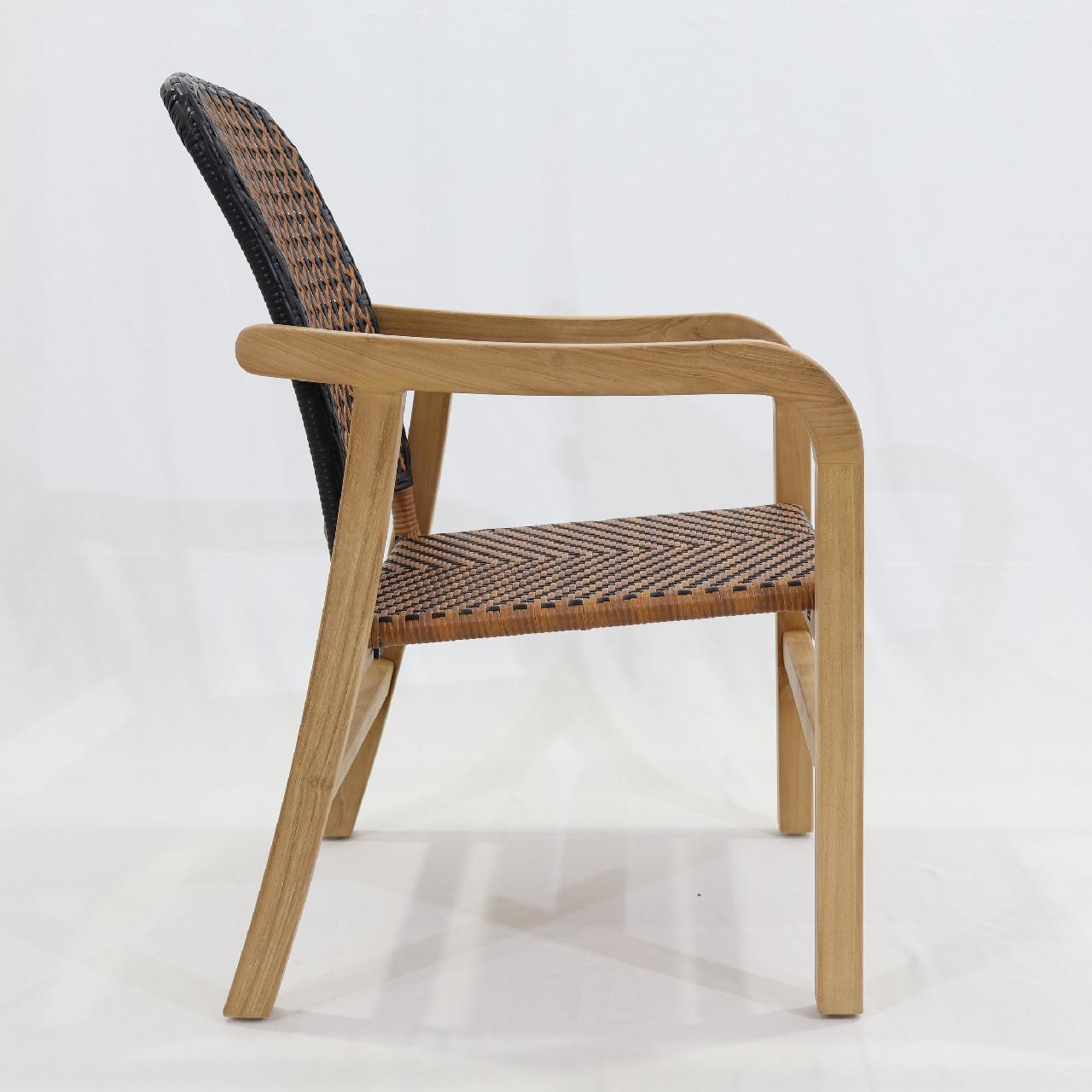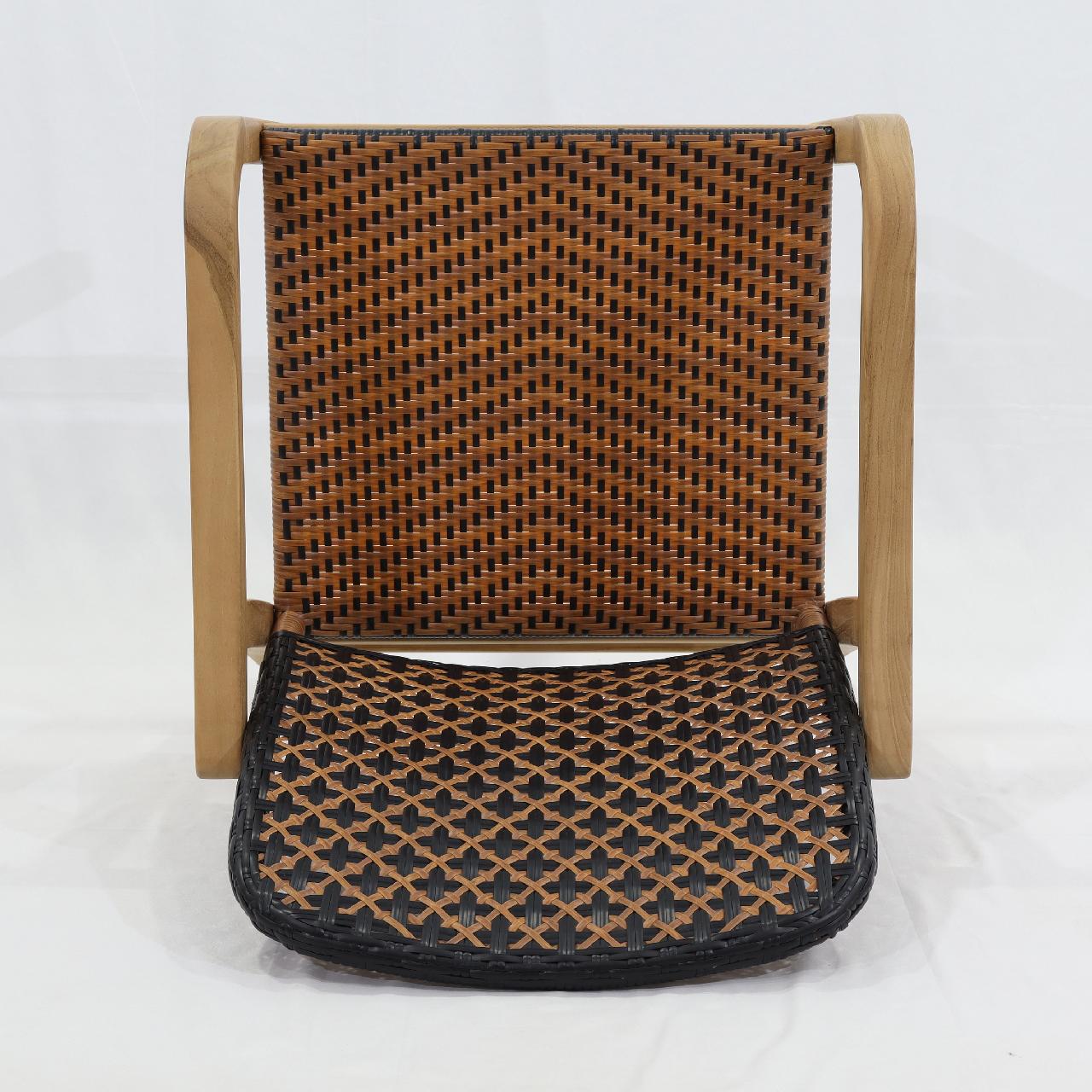 Ende Armchair Frame: Teak Back: Aluminum Pipe Powder Coating Woven: Synthetic Peel Finishing: Natural