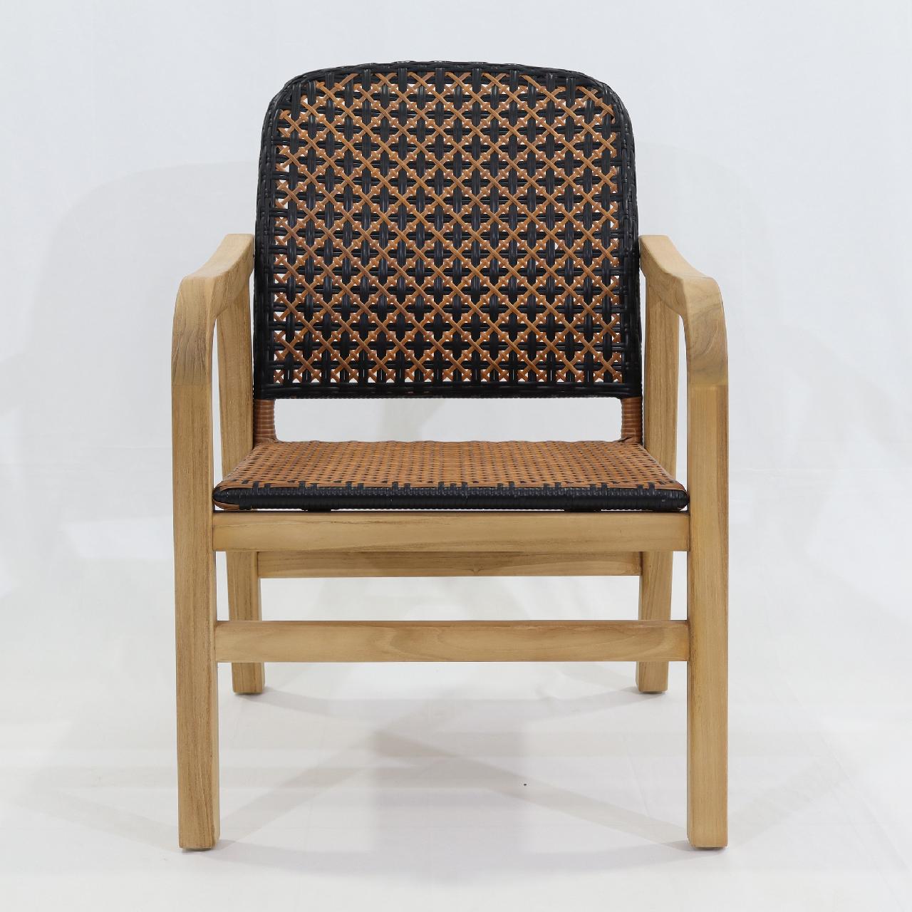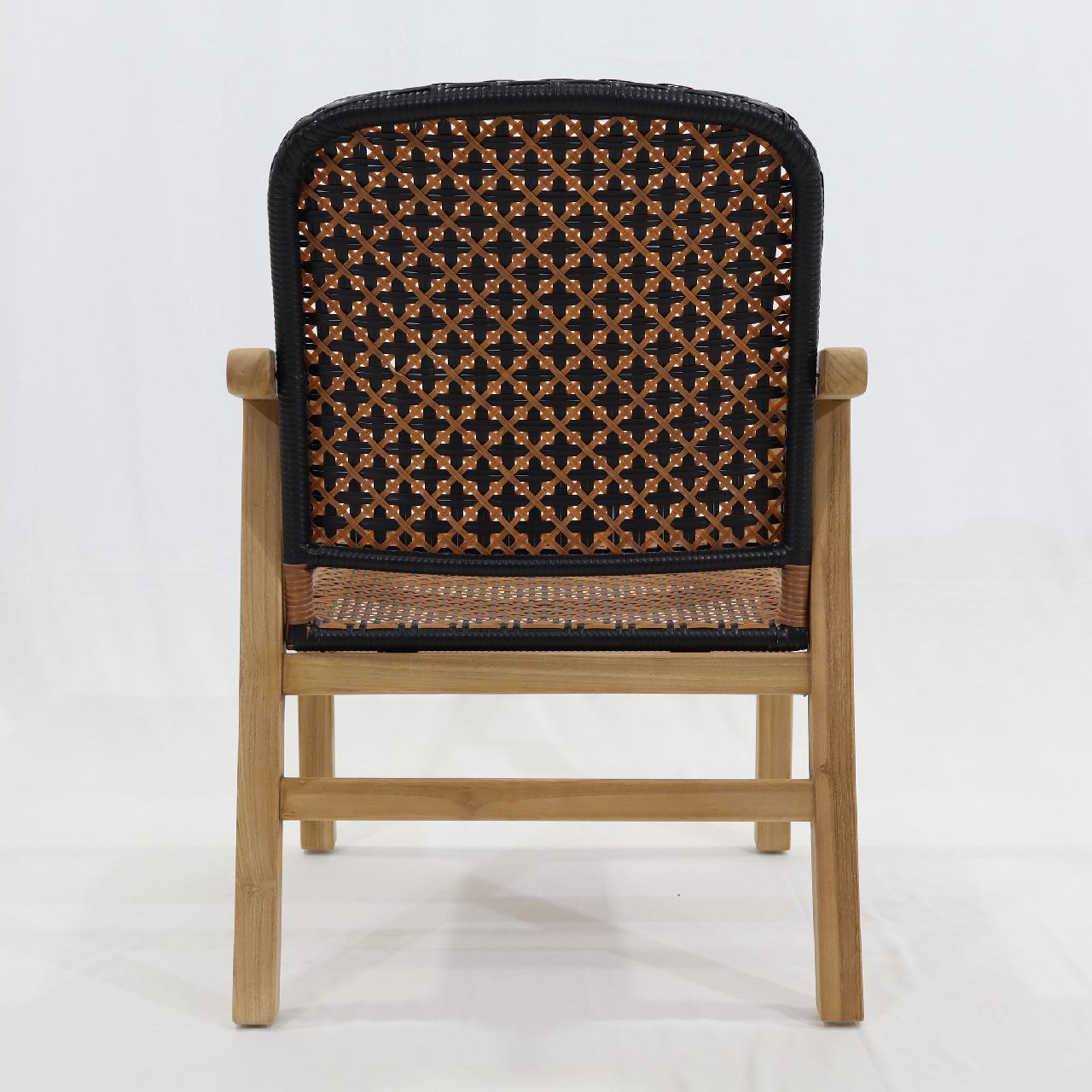 Ende Armchair Frame: Teak Back: Aluminum Pipe Powder Coating Woven: Synthetic Peel Finishing: Natural